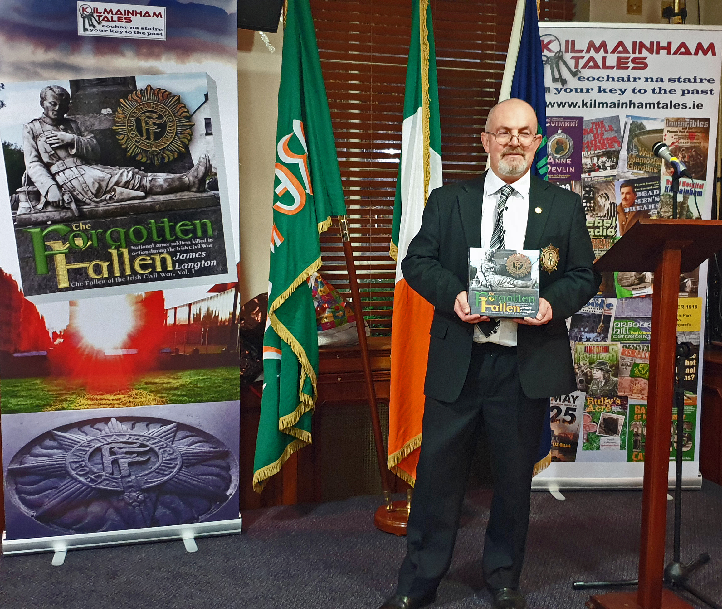 James Langton's long-awaited 'The Forgotten Fallen' was launched on Friday 29 November in Cathal Brugha Barracks before a huge attendance. The book was launched by Cmmdnt. Daniel Ayiotis, Officer in Charge of the Military Archives, who made an excellent speech in which he touched on the difficulties of recording and commenting on the Irish Civil War and seeing past the actions of both sides to the core truths of the time. You can read this speech in full here.