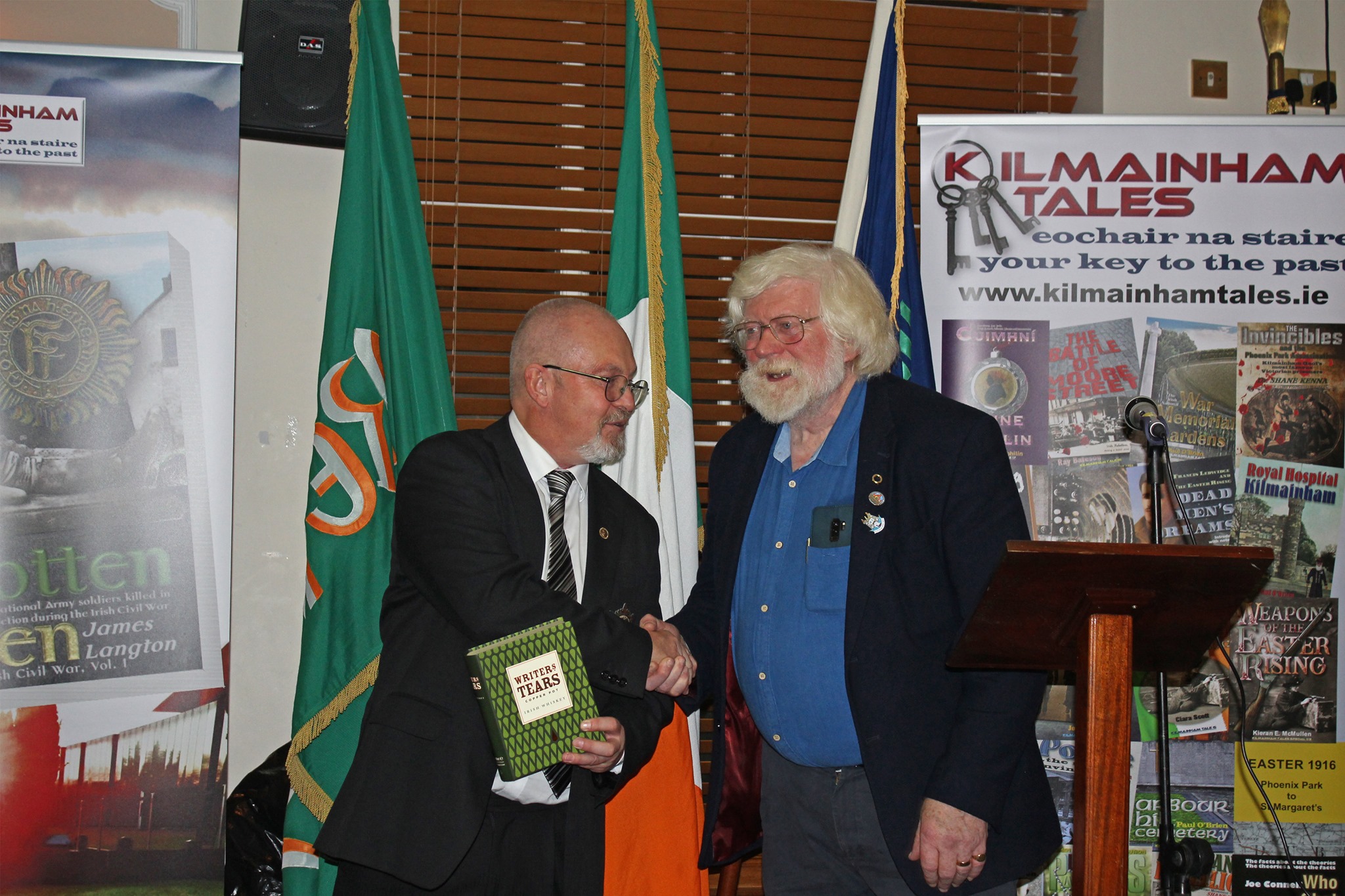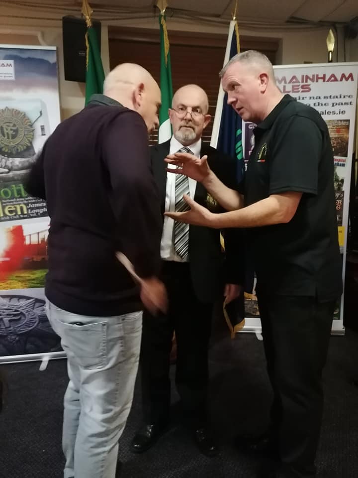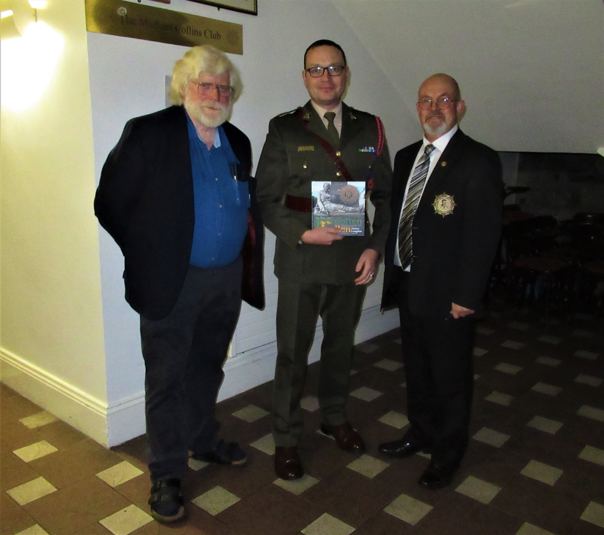 James Langton outlined his research into the book, and thanked all who had helped in any way, while Mícheál Ó Doibhilín thanked those who had facilitated the launch, in particular Lt. Col. Sean O'Farrell, O/C 7th Battalion and of Cathal Brugha Barracks, the staff of the Michael Collins Club/Privates' Mess. and a special word of thanks to Ronnie Daly.