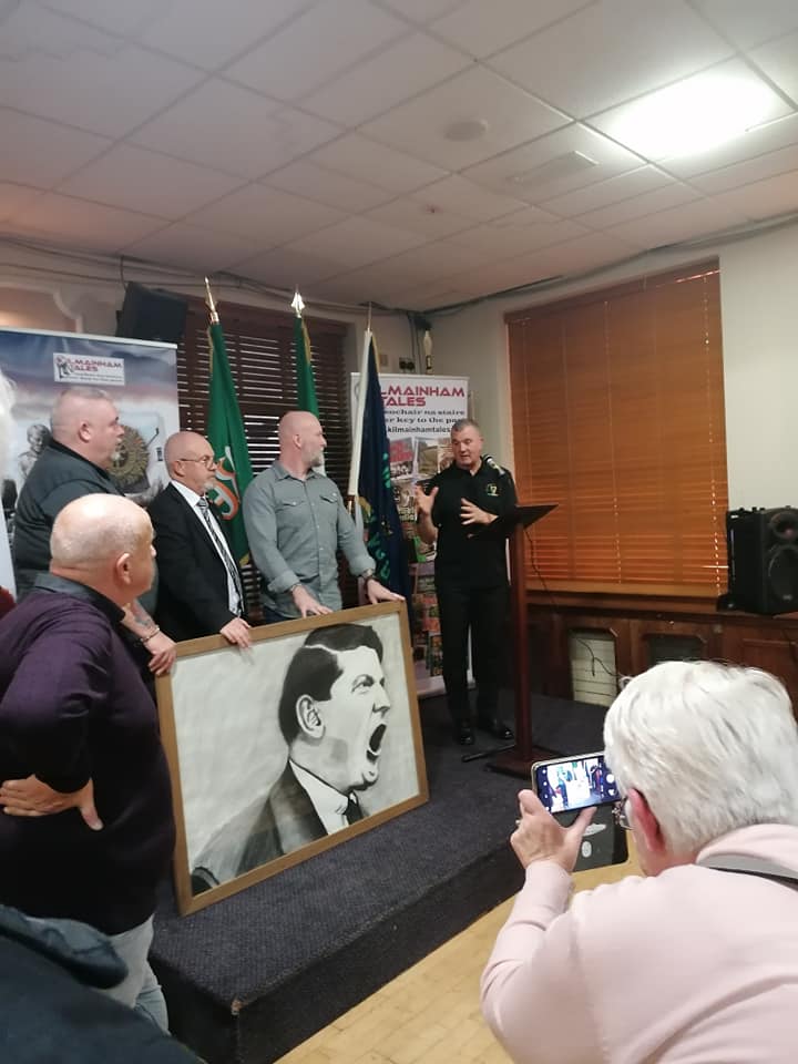 Also on the night, members of the Collins 22 Society, of which James is a member, presented a beautiful pencil portrait of General Michael Collins to the Michael Collins Club.