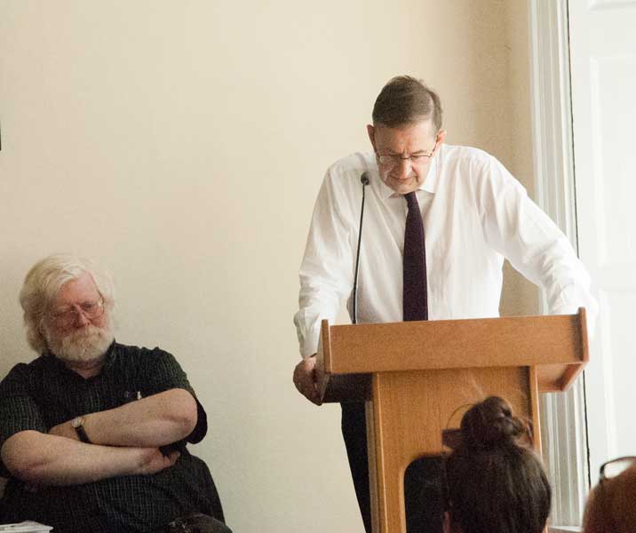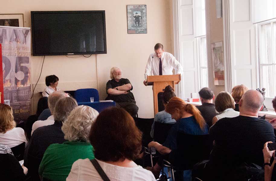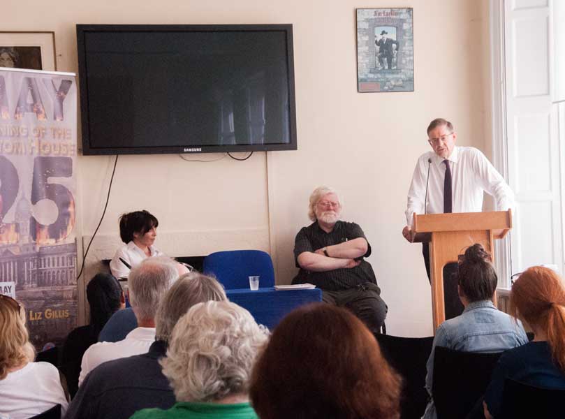 Kilmainham Tales M.D. Mícheál Ó Doibhilín added, while presenting Eddie with a bottle of Proclamation Whiskey which commemorates the printing of the proclamation issued at Easter 1916, "In this overview of the role of alcohol in the war for Irish independence, author and historian Eddie Bohan traces the vital place of the Irish pub as a meeting place, a safe house and even as banker for the Irish revolution. This is a unique book, which examines the forces behind Ireland's long revolutionary history in a fresh and unique way".