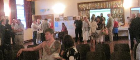Below we see part of the large audience taking refreshments and discussing the attack during the intermission.