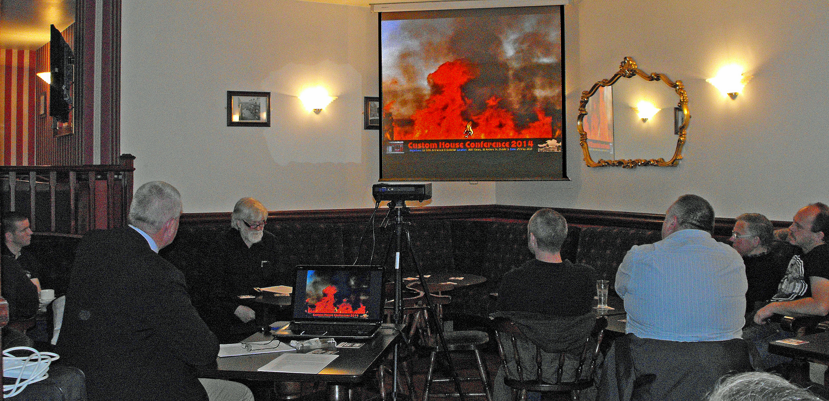 As the Conference took place on a Sunday - the anniversary of the burning, 25 May - and was held in the morning to facilitate a wreath laying at the memorial in the Custom House grounds at 1.00 pm (time of the attack), the pub was closed and the meeting took place in the huge rear lounge.