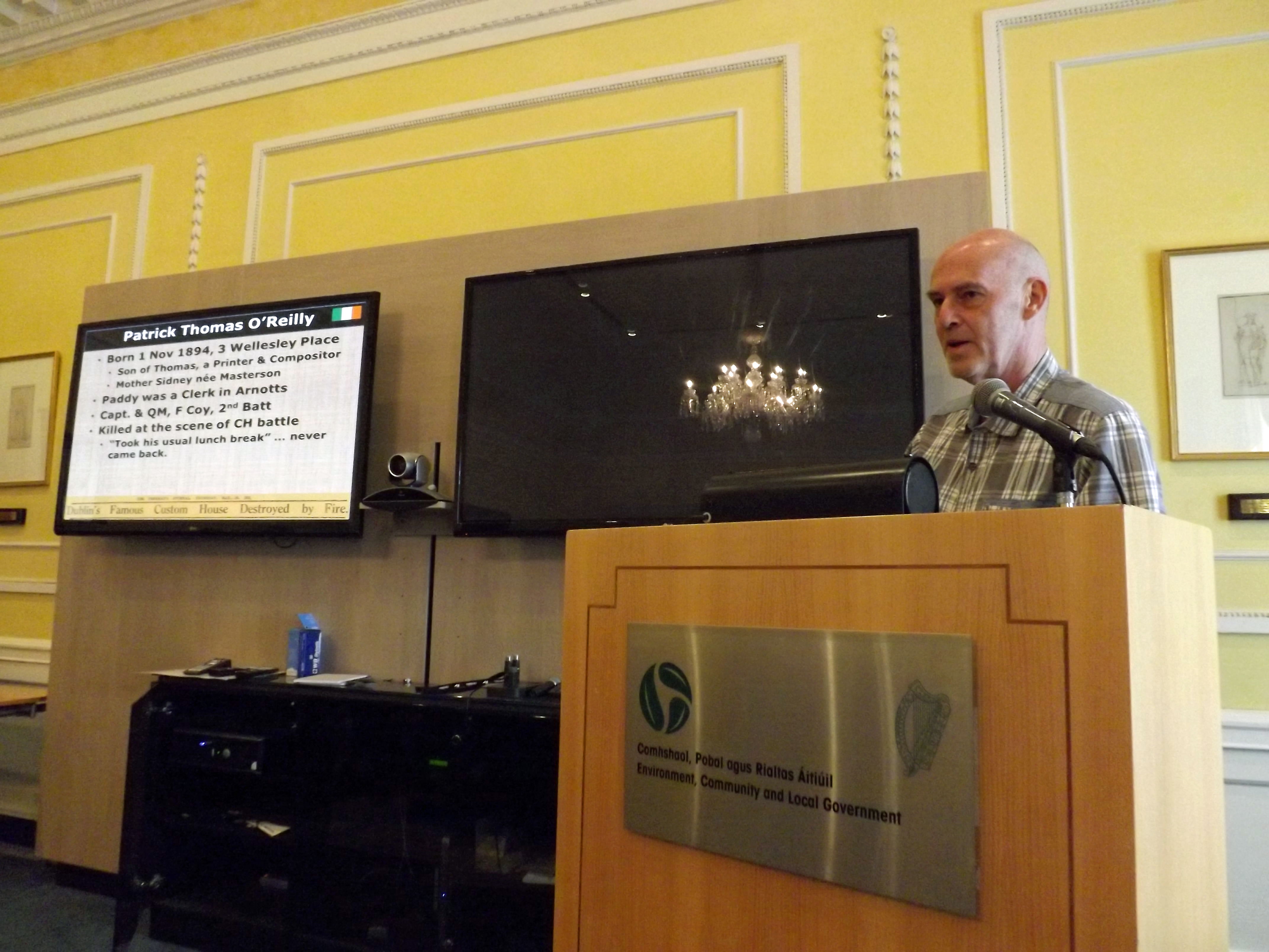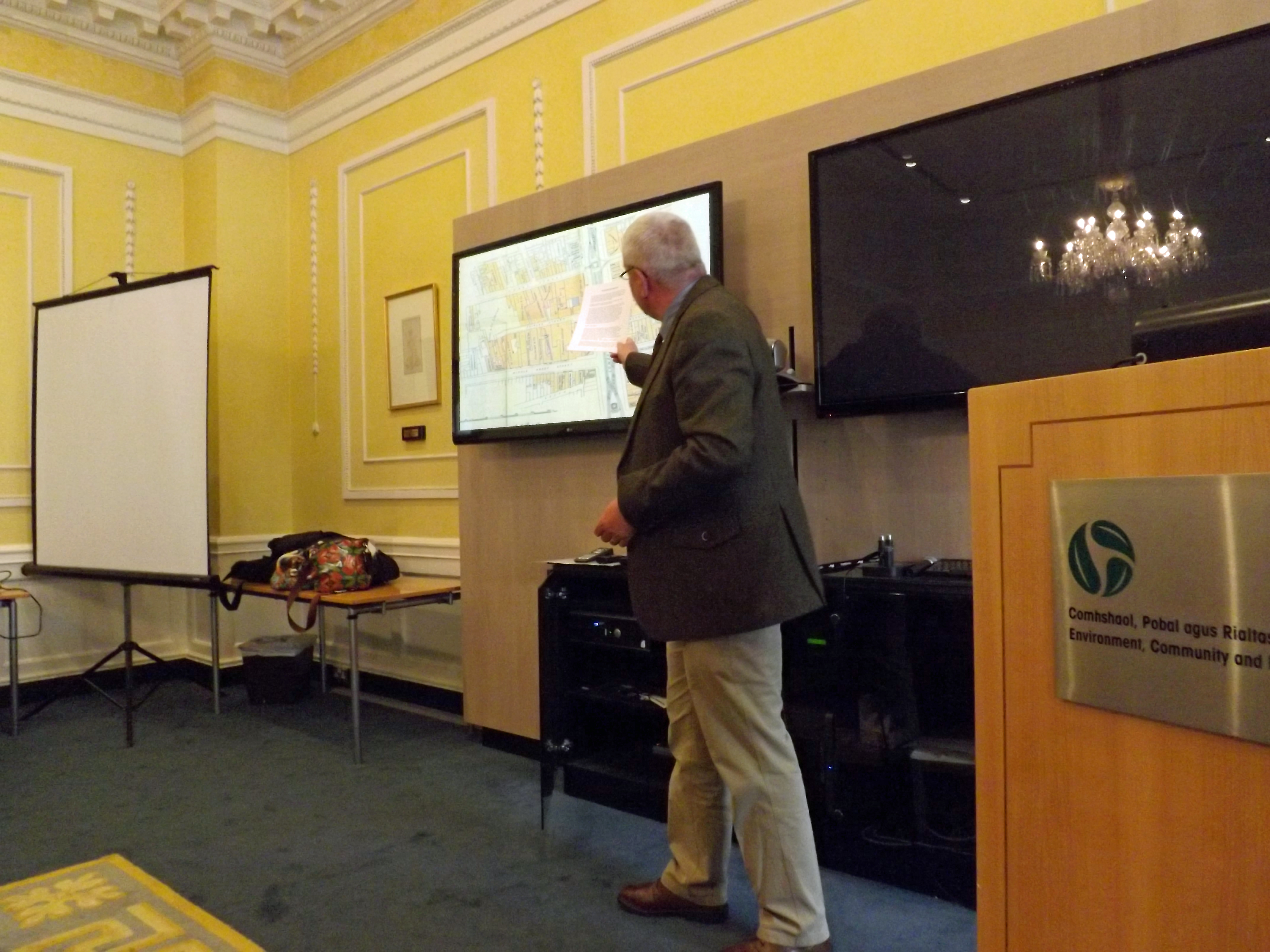Liz Gillis chaired the conference and Mícheál Ó Doibhilin operated the technical equipment and took photos for this report. All expressed their delight with the Conference, and their appreciation of the Department. It is hoped to have the Conference in the Custom House again in 2016, and to build towards a major commemoration and Conference in 2021.