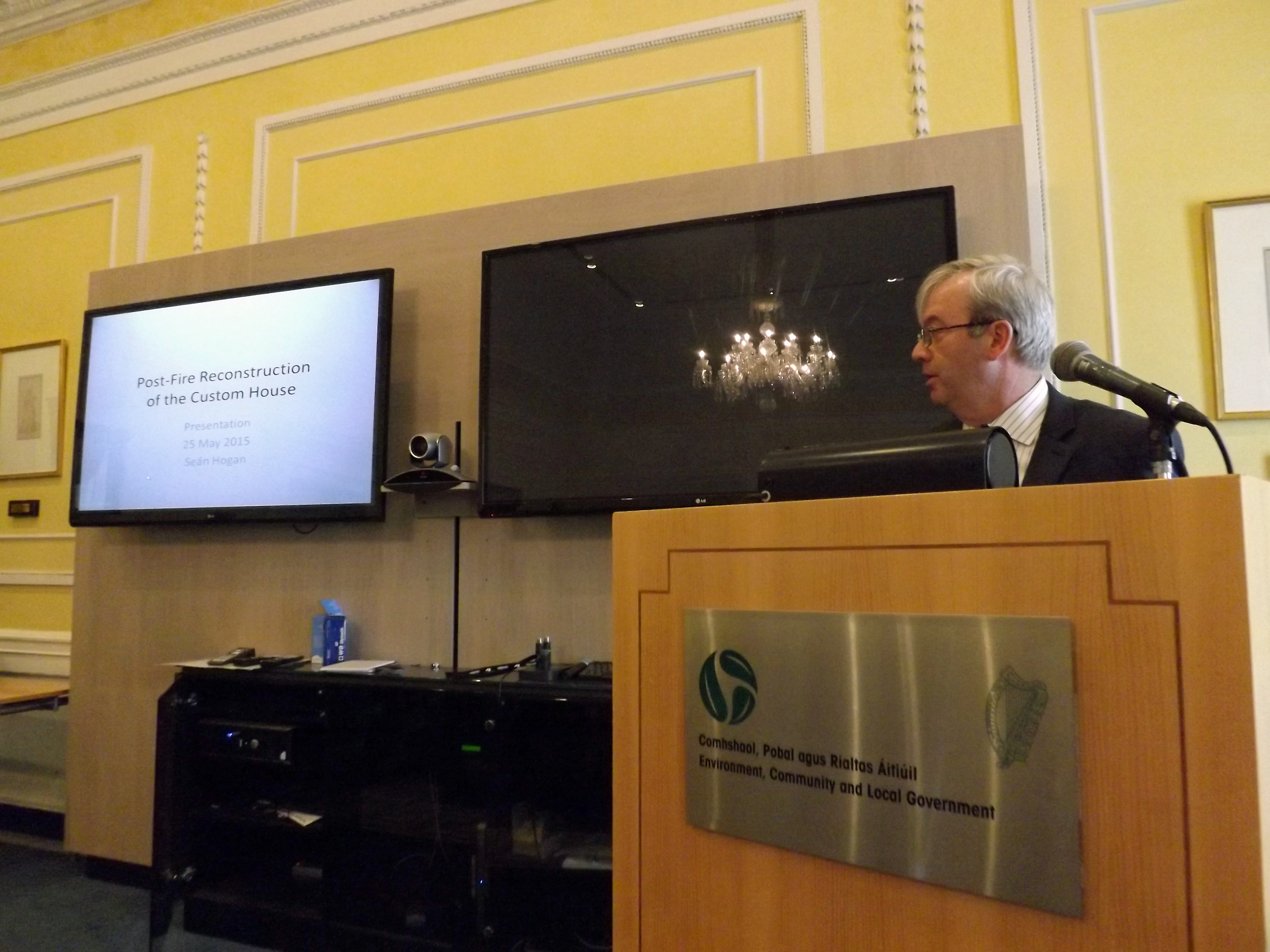 The Conference was hosted by the Department of the Environment, Community and Local Government. Sean Hogan represented the Department and welcomed all to the Custom House - "the only building in the world with a monument in its grounds to those who burned it down" as he told us!