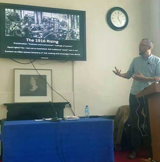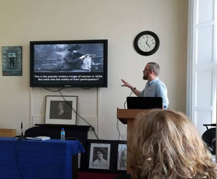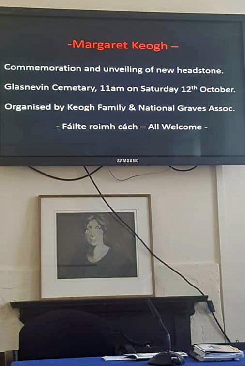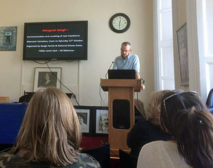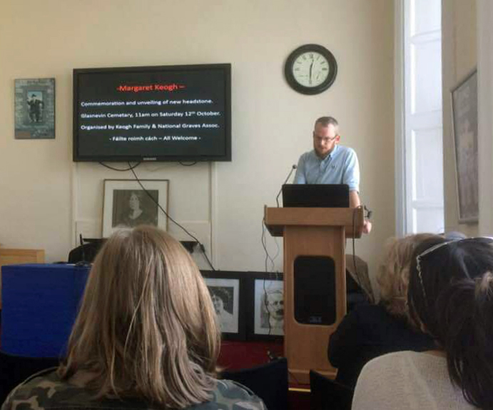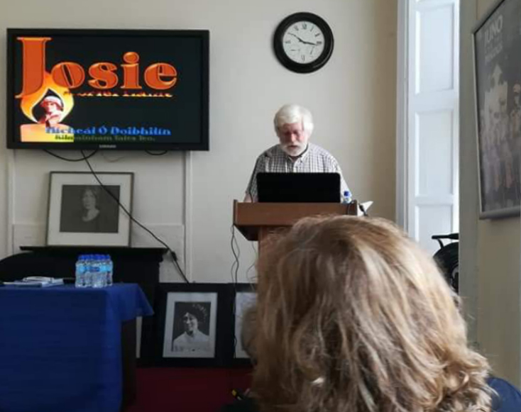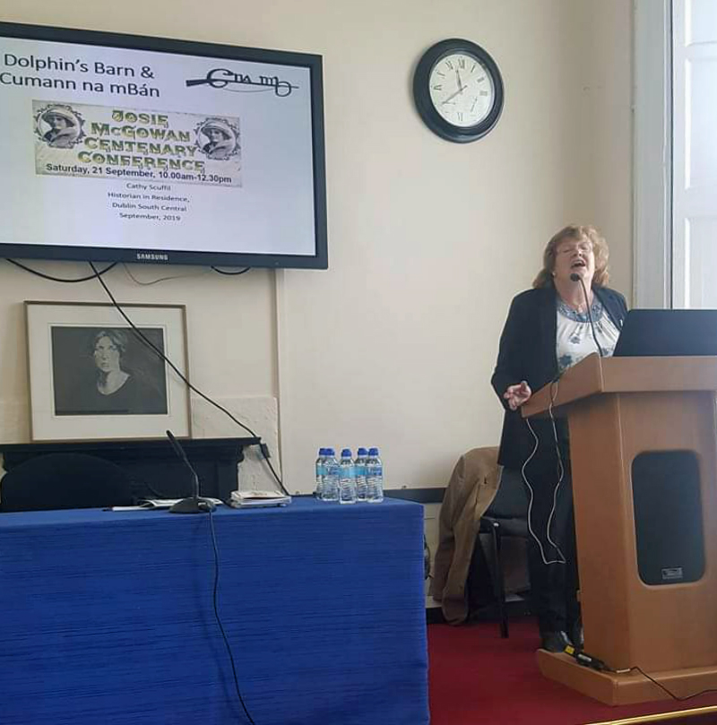 There were four speakers in all – at 10.00 am Mícheál Ó Doibhilín started the Conference with a talk on 20-year-old Josie herself, and gave a meticulously illustrated and researched account of here life, while Mary McCauliffe – who was to talk on the women of the Irish Citizen Army but, due to a serious injury was unable to prepare this – spoke instead on the women of Cumann na mBan – a fascinating talk. Cathy Scuffil followed with a wonderful account of the women of Cumann na mBan in Dolphin’s Barn (where Josie was a member) and the final talk was an excellent and lively talk on the women of Cumann na mBan who were killed in the early 20th century revolutionary period.