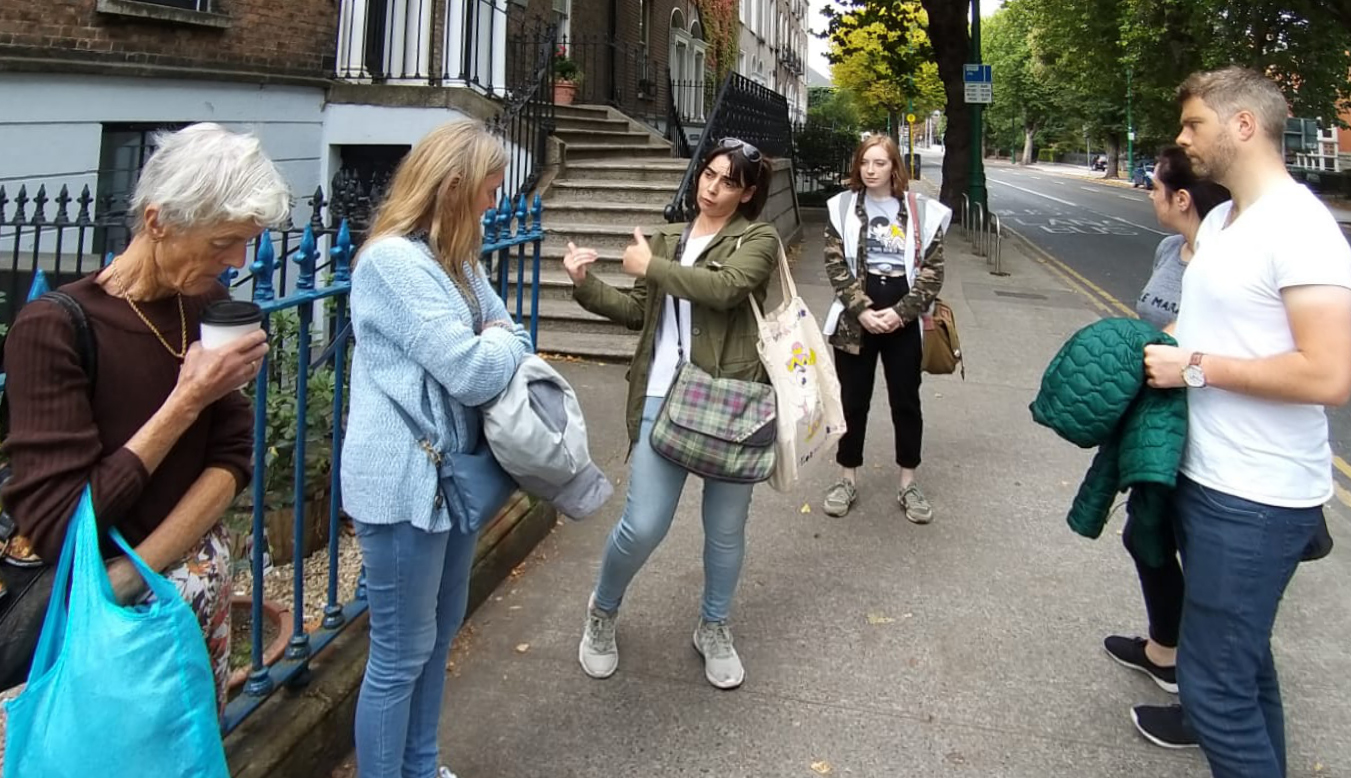 Then, at 1.30 pm Liz Gillis led a guided tour from Beggars’ Bush to Foster Place, stopping along the way at many well-known and not-so-well-known site of historic interest (including Mount Street Bridge for an detailed account of that battle in 1916). At Foster Place Mícheál outlined the circumstances of the DMP baton charge that led to Josie McGowan’s death, and announced the intention of erecting a plaque in memory of Josie there.