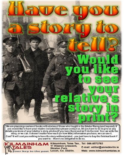 if you have an "unknown" relative who was part of the Easter Rising and would like to see his or her story on our website or in print, then click the link below and download the form, fill it in and post it off to us. We'll be in touch very quickly to see what we can do with your story.
