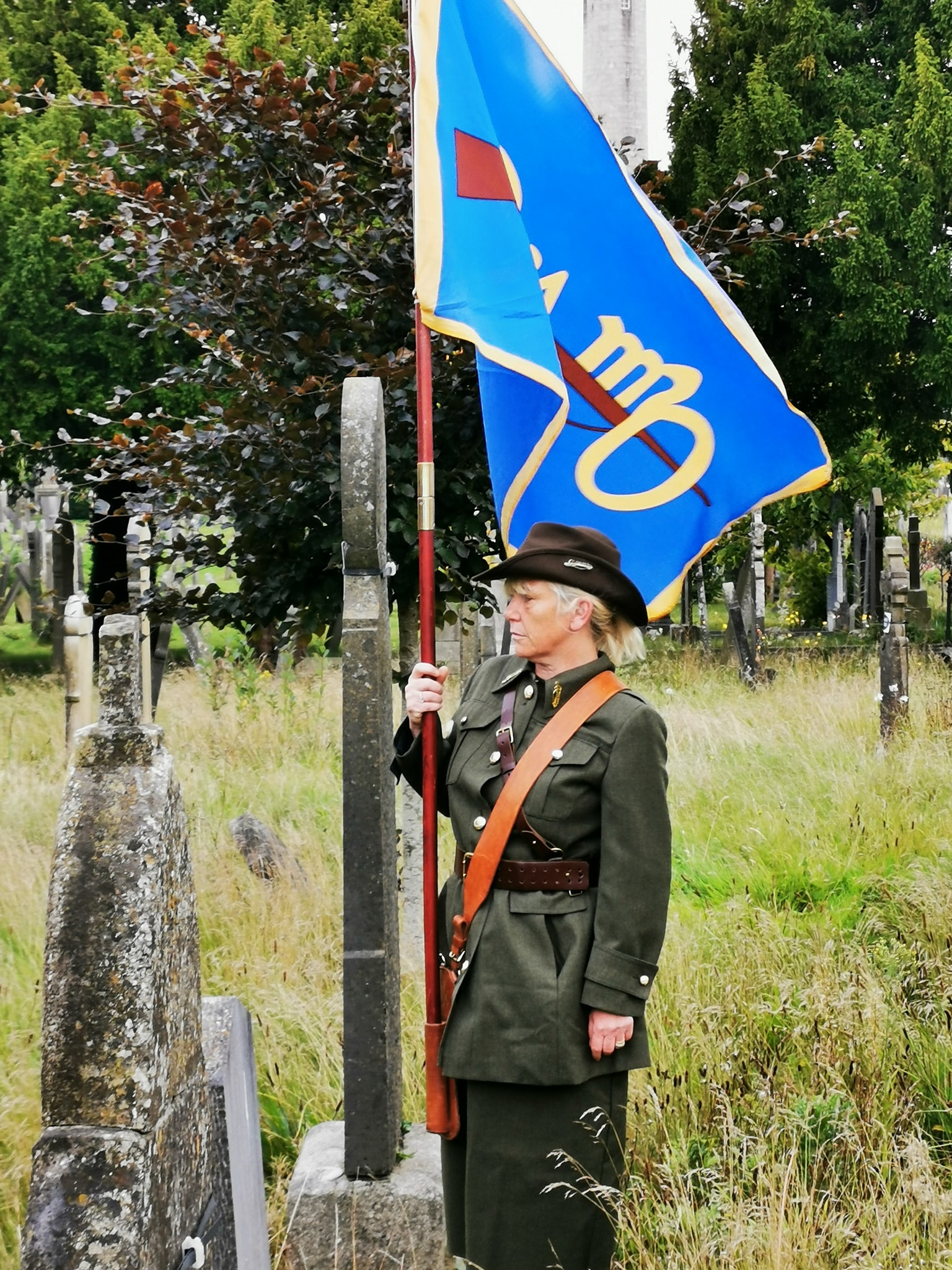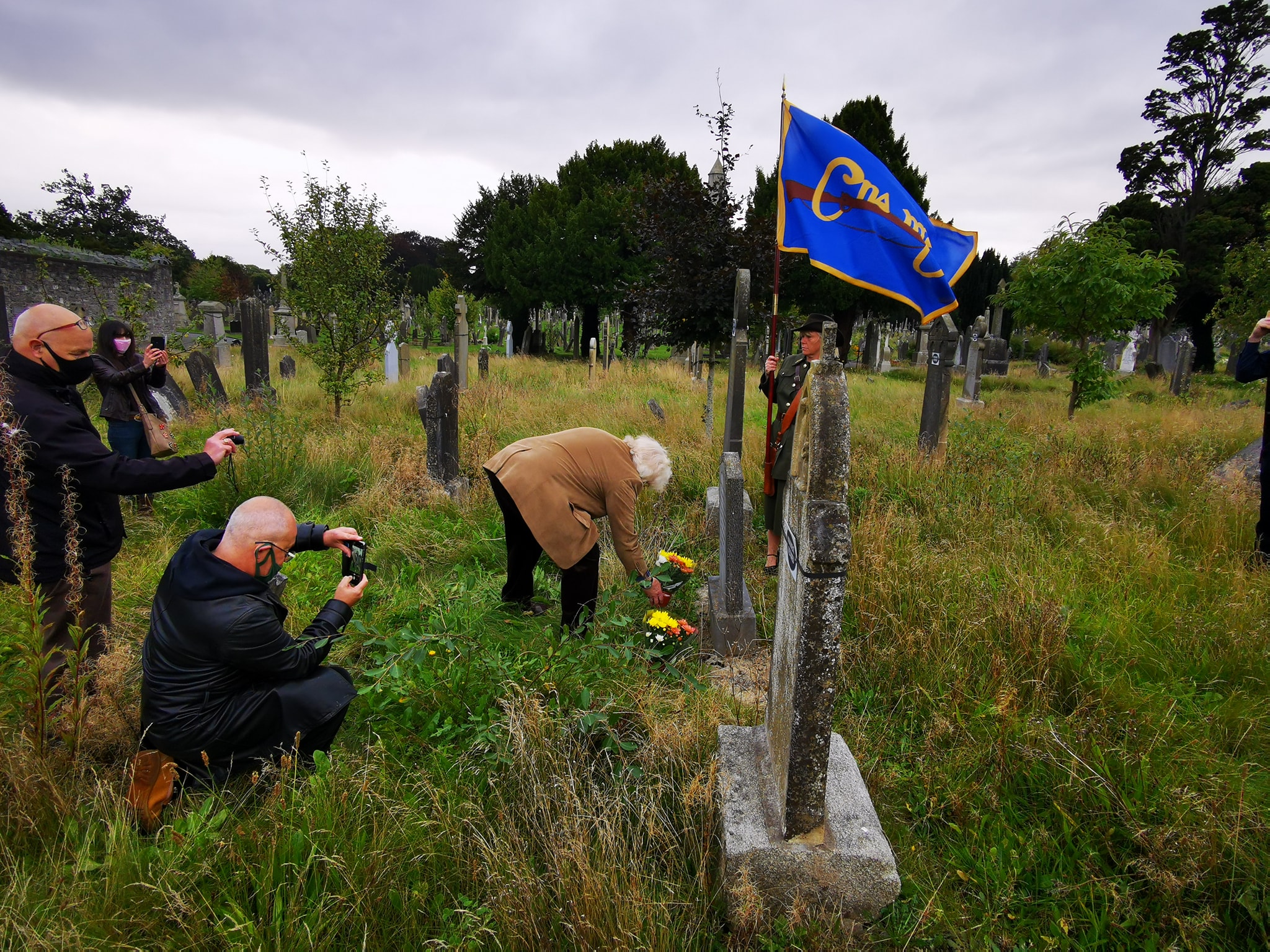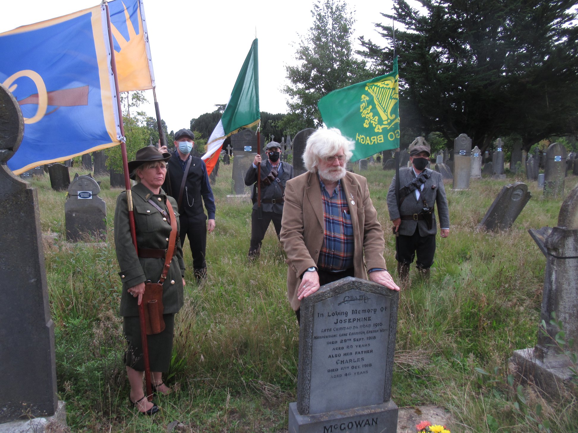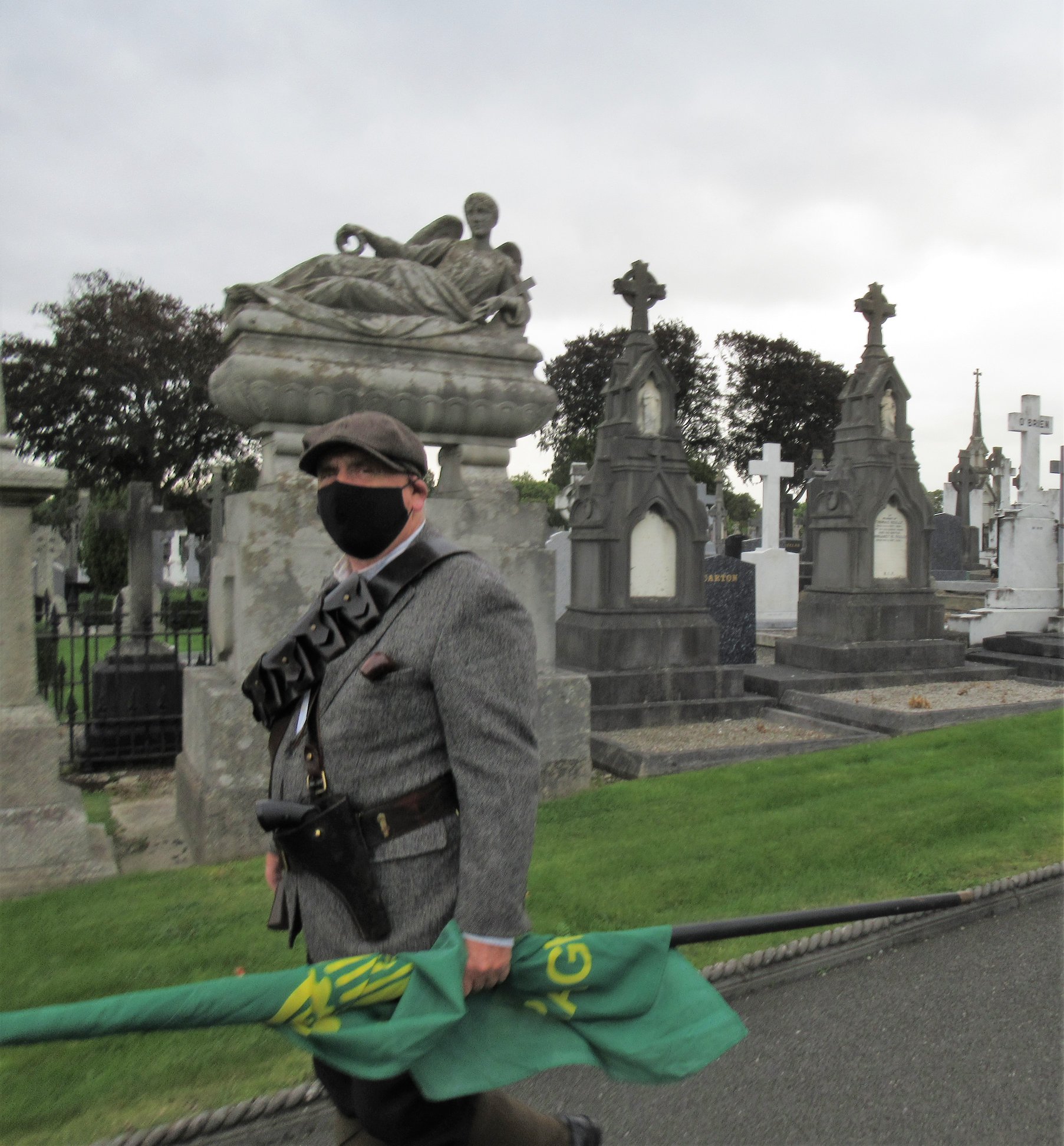 Today we cannot have a large gathering, but we are honoured to have you, the members of the Irish Volunteers Dublin Brigade, to pay tribute to a brave soul.