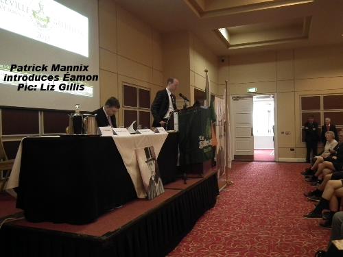 It was fitting, therefore, that our own MD, Mícheál Ó Doibhilín (‘Anne Devlin’, ‘Joe Poole’, ‘Abandonment to Restoration’), should follow with his paper on the Irish Diaspora ‘Diasporations – the Irish Diaspora – its causes and consequences’. Mícheál covered the broad sweep of Irish history, identified the causes of the Irish Diaspora, and examined the contribution that Diaspora made to the national struggle. As always, his talk was well illustrated, visually supporting his words.