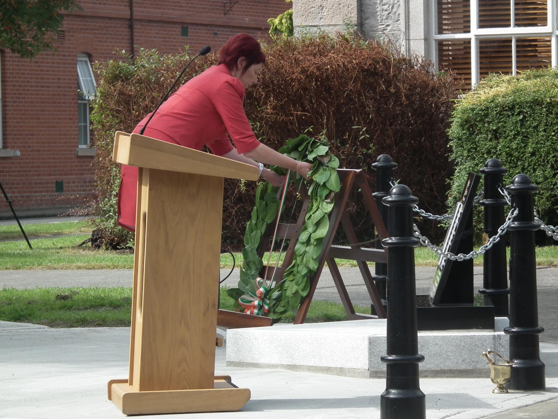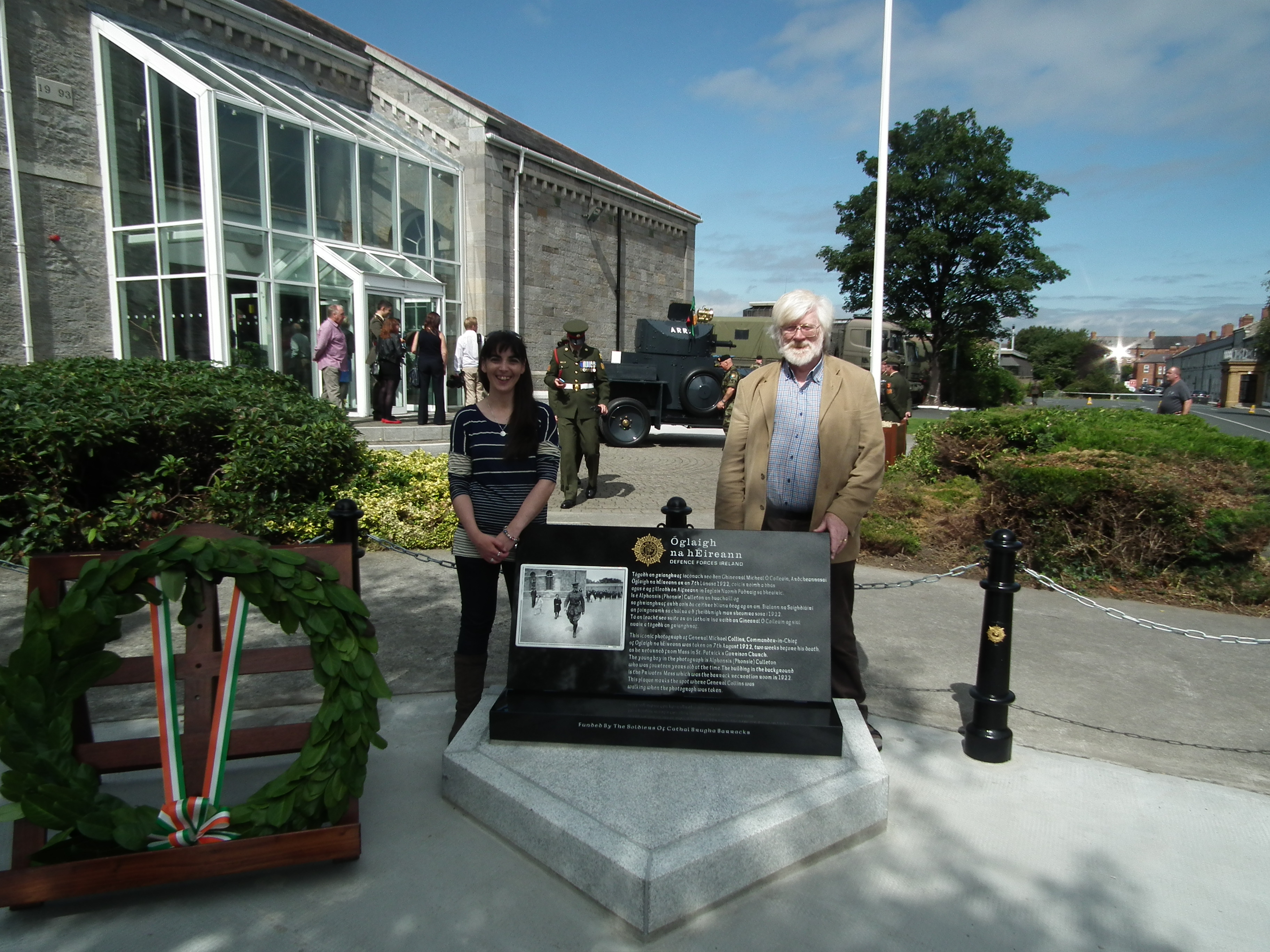 Collins’ grand-niece Helen Collins was guest of honour and laid a wreath at the plaque. Lieutenant General Conor O’Boyle, Chief of Staff of the Irish Defence